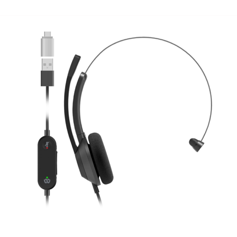 Auricular alámbrico monoaural de la Serie 300, ideal para trabajadores que requieren llamadas claras en la oficina o en centros de contacto. Su diseño ligero lo hace cómodo para uso diario.