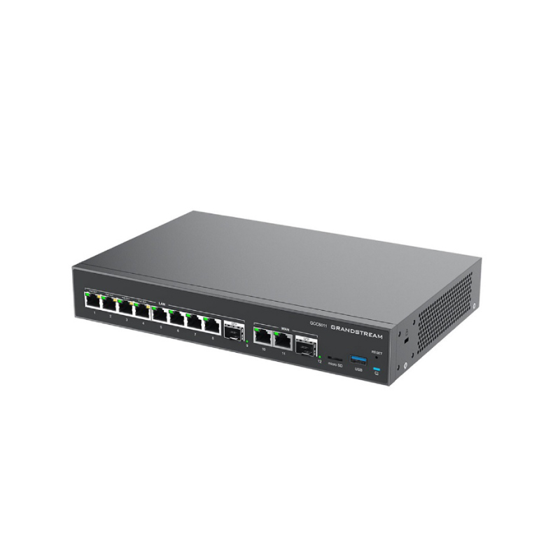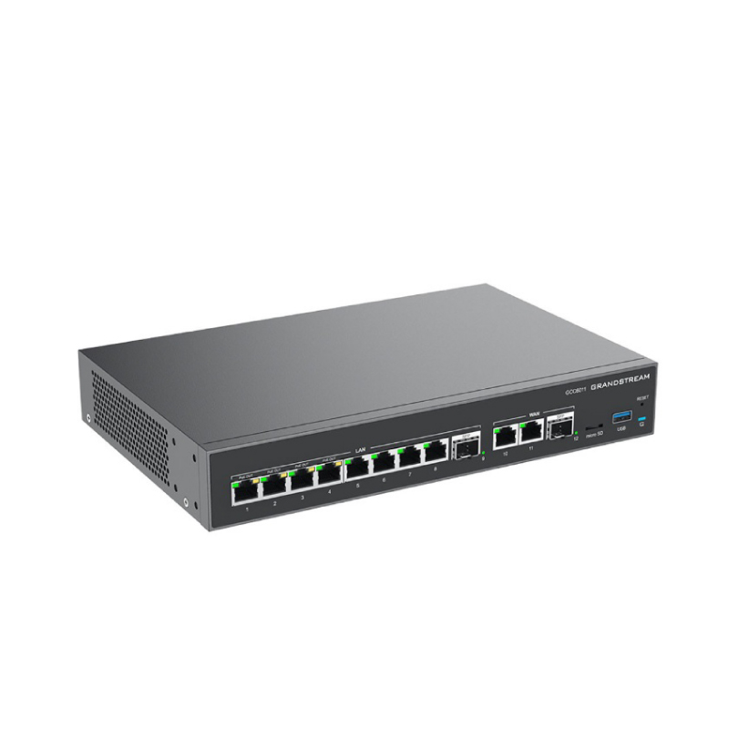 El Grandstream GCC6011 es la versión más avanzada de la serie, con mayor número de puertos Ethernet y capacidad de montaje en rack. Integra router VPN, firewall, IP PBX y switch PoE, ideal para oficinas medianas o con mayor demanda de red y comunicaciones.
