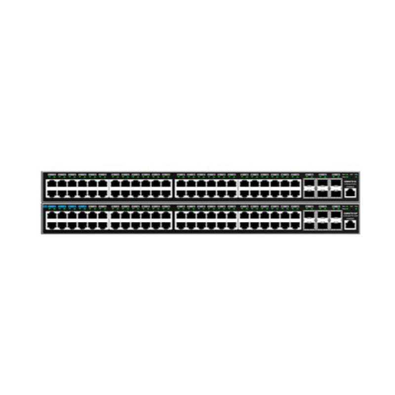 Combina 48 puertos Gigabit Ethernet y 6 uplinks SFP+ de 10G, proporcionando una conectividad estable y rápida para infraestructuras críticas, soluciones IP integradas y despliegues con alto tráfico de red.