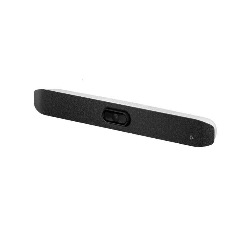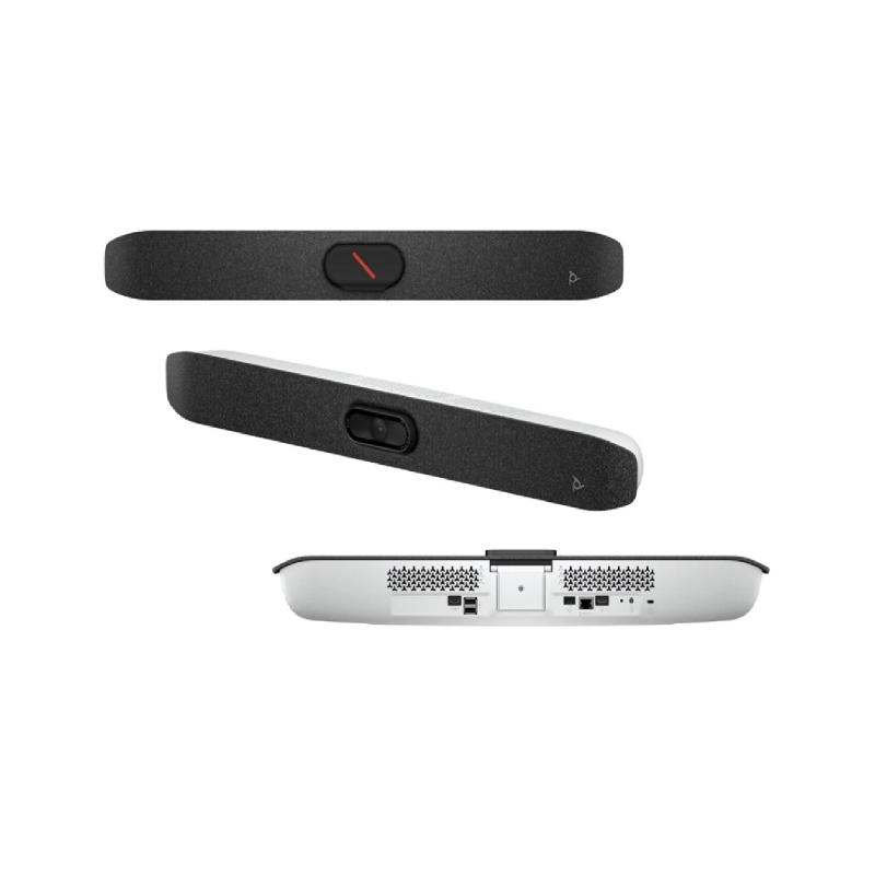 La Poly Studio V12 es una barra de videoconferencia USB ultra-compacta, pensada para salas pequeñas o ambientes BYOD. Ofrece cámara 4K UHD, gran angular de 120°, micrófonos kit beamforming, altavoces estéreo y tecnologías de cancelación de ruido para asegurar claridad en las reuniones.