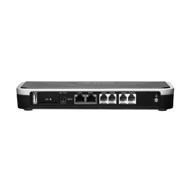 • 2 puertos FXO para líneas analógicas y 2 puertos FXS para teléfonos/fax.